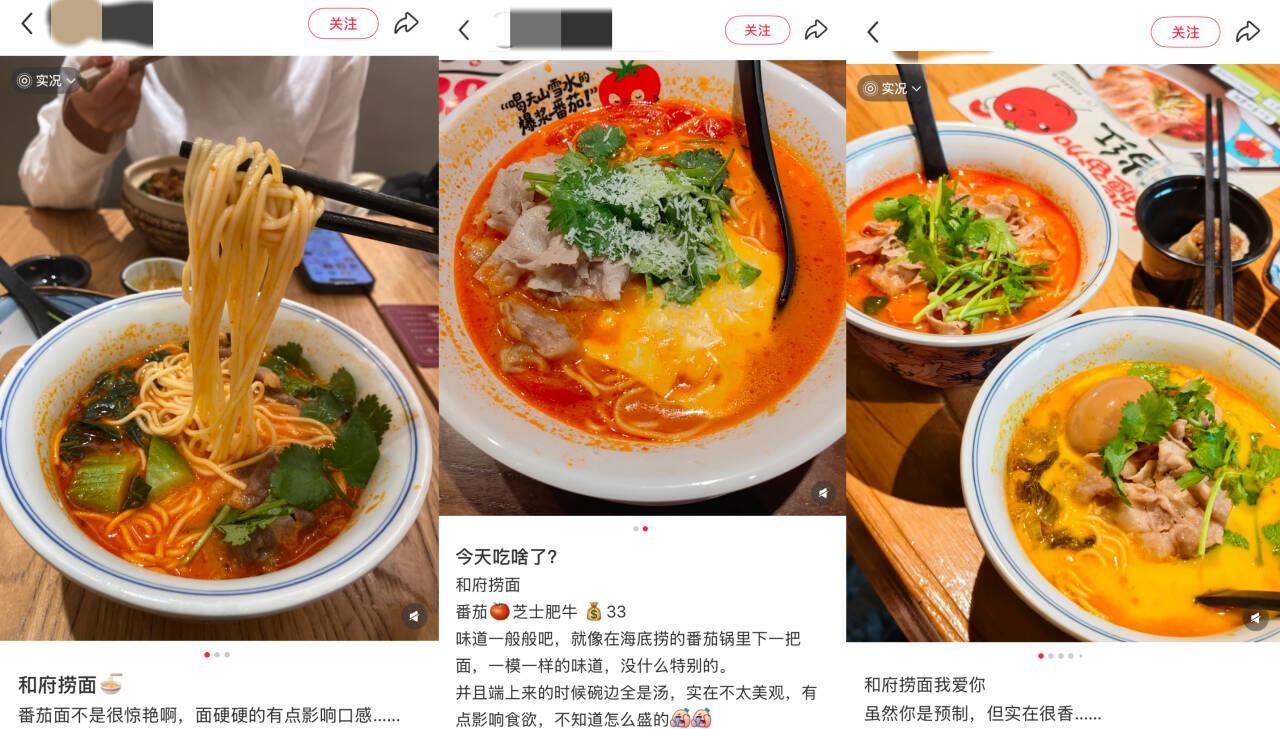 此前,据山东商报报道,有多位消费者反映“客单价正在三四十元的和府捞面,浇头、汤底均是袋拆,相当于花高价吃预制面”,并称“正在门店能看到后厨堆满塑料袋”。而山东济南的王密斯,为了避开“预制菜”而选择了从打“摄生面”概念的和府捞面,却正在店内就餐时看到后厨员工扯开汤底预包拆倒进面碗中,再浇上一勺滚烫的汤,她点的那碗29元的“草本酸辣肥牛面”就做好了。